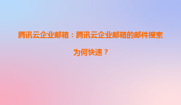 2025-06-25騰訊云企業郵箱:郵件搜索為何如此快速高效? 分布式存儲架構:億級數據的瞬時響應 騰訊云企業郵箱采用自研的分布式存儲引擎,將海量郵件數據智能分片存儲于數...