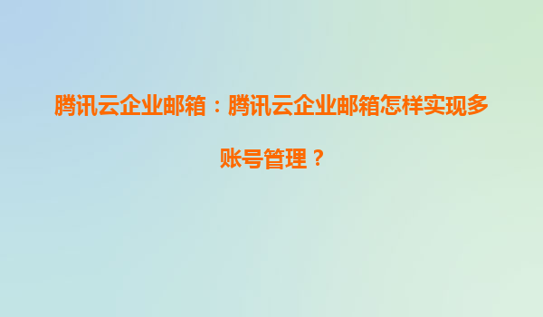 2025-06-25高效協同新紀元:騰訊云企業郵箱多賬號管理全解析 在數字化轉型加速的今天,企業郵箱不僅是溝通工具,更是企業信息管理的核心樞紐。騰訊云企業郵箱憑借其強大的多賬號管理功能,為不同規模的企業提...