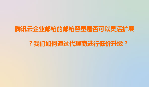 2025-11-08騰訊云企業(yè)郵箱郵箱容量靈活擴(kuò)展及代理商低價(jià)升級(jí)指南 一、騰訊云企業(yè)郵箱容量靈活擴(kuò)展的優(yōu)勢(shì) 騰訊云企業(yè)郵箱作為云計(jì)算領(lǐng)域的領(lǐng)先服務(wù)商,其核心優(yōu)勢(shì)之一便是提供高度靈活的存儲(chǔ)擴(kuò)展能力。用戶(hù)可根據(jù)企業(yè)...
