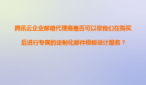 2025-11-08騰訊云企業(yè)郵箱代理商能否提供購(gòu)買(mǎi)后的專(zhuān)屬郵件模板定制化服務(wù)? 一、騰訊云企業(yè)郵箱代理商服務(wù)范疇 騰訊云企業(yè)郵箱代理商作為官方授權(quán)服務(wù)商,主要提供企業(yè)郵箱的銷(xiāo)售、部署及基礎(chǔ)技術(shù)支持。在購(gòu)買(mǎi)后的增值服務(wù)方...