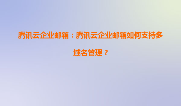 2025-06-22騰訊云企業郵箱:多域名管理的強大解決方案 在全球化商業環境中,企業常需管理多個品牌域名或區域業務域名。騰訊云企業郵箱憑借其多域名管理功能,為企業提供了一站式郵箱解決方案。本文將深入...
