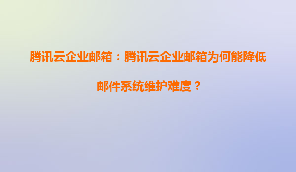 2025-06-20騰訊云企業郵箱:如何重塑企業郵件系統維護體驗? 傳統郵件維護的痛點與云端轉型契機 在數字化轉型浪潮中,企業郵件系統如同"數字中樞神經",但傳統自建方案常伴隨三大痛點:服務器宕機...