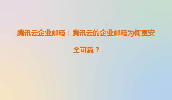 2025-06-20騰訊云企業郵箱:打造企業通信的安全堡壘 全球領先的云基礎設施支撐 騰訊云企業郵箱依托騰訊云覆蓋全球27個地理區域的服務器集群,采用多可用區容災架構設計。數據中心通過Tier3+國際認...