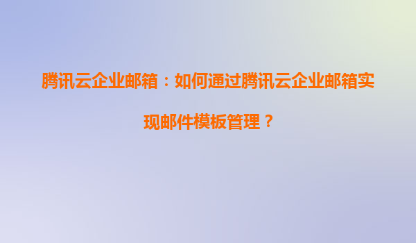 2025-06-19以下是按照要求編寫的HTML格式內容: 騰訊云企業郵箱:如何通過騰訊云企業郵箱實現郵件模板管理 一、郵件模板管理的重要性 在數字化辦公場景中,企業日常需發送大量標準化郵件(如通知公告、營銷推廣、客戶服務等...