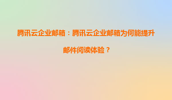 2025-06-19騰訊云企業郵箱為何能提升郵件閱讀體驗? 引言:數字化時代的郵件體驗挑戰 在日均接收數十封商務郵件的環境下,傳統郵箱常面臨界面雜亂、垃圾郵件泛濫、加載緩慢等問題。騰訊云企業郵箱...