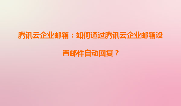 2025-06-14騰訊云企業郵箱:高效設置郵件自動回復,提升企業溝通體驗 為什么自動回復功能如此重要? 在商業場景中,及時響應客戶郵件直接影響企業形象。騰訊云企業郵箱的自動回復功能可解決節假日、...