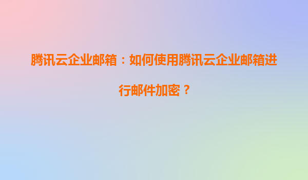 2025-06-14騰訊云企業郵箱:全方位郵件加密指南與生態優勢解析 一、為什么郵件加密至關重要? 在數字化辦公時代,企業郵件承載著大量敏感信息。騰訊云企業郵箱采用端到端加密技術,確保商務機密、...