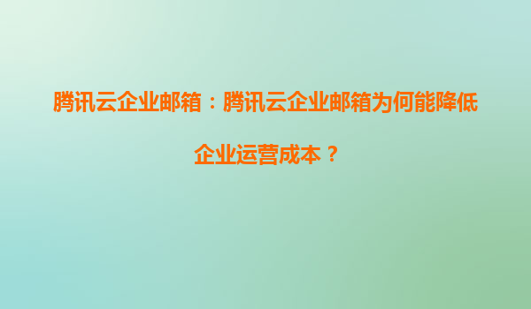 2025-06-13騰訊云企業郵箱如何降低企業運營成本?深度解析云服務與代理體系的雙重優勢 引言:數字化轉型中的成本挑戰 在競爭激烈的商業環境中,企業運營成本控制成為核心競爭力。傳統郵箱系統面臨...