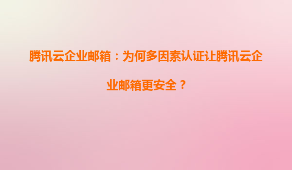 2025-06-13騰訊云企業郵箱:為何多因素認證讓企業郵箱更安全? 在數字化轉型加速的時代,企業郵箱已成為商業通信的核心樞紐,承載著大量敏感數據和商業機密。騰訊云企業郵箱作為行業領先的解決方案,通過...