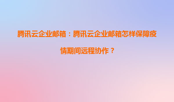 2025-06-09騰訊云企業郵箱:疫情期間遠程協作的堅實后盾 全時全域訪問保障協作連續性 疫情期間居家辦公常態化,騰訊云企業郵箱提供全天候訪問能力。依托騰訊云全球1300+加速節點,無論員工身處何地,均可通過網頁...
