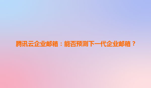 2025-06-05騰訊云企業郵箱:能否預測下一代企業郵箱的進化方向? 一、企業郵箱的進化軌跡 從簡單的郵件收發工具到數字化辦公中樞,企業郵箱經歷了三次重大迭代: 基礎通信時代:滿...