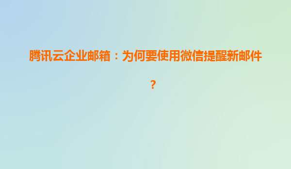 2025-06-04騰訊云企業郵箱:為何要使用微信提醒新郵件? 一、移動辦公時代的剛需場景 在快節奏的商務環境中,及時響應郵件可能意味著商機的獲取或風險的規避。騰訊云企業郵箱深度整合微信提醒功能...