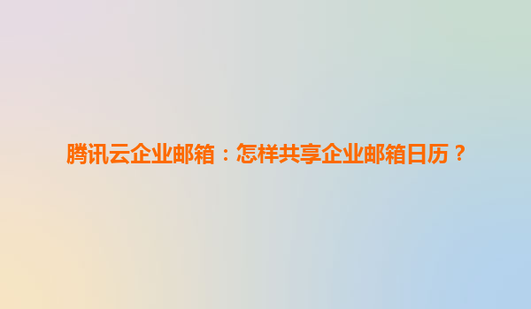 騰訊云企業郵箱日歷共享指南:高效協同的秘訣 在現代企業協作中,日程管理是團隊高效運轉的核心。騰訊云企業郵箱的日歷共享功能,讓團隊日程管理變得前所未有的直觀便捷。本文將詳細解析日歷共...