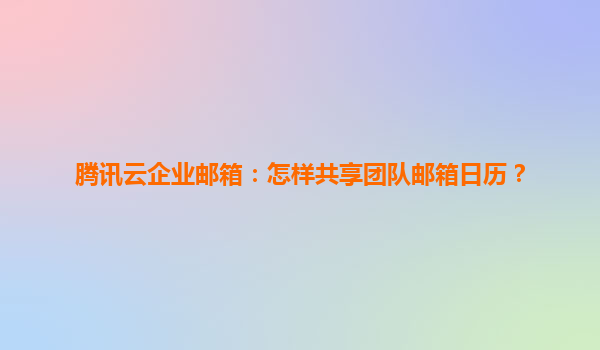 2025-06-02騰訊云企業郵箱:高效共享團隊郵箱日歷全攻略 在快節奏的團隊協作中,日程管理能力直接影響工作效率。騰訊云企業郵箱的日歷共享功能,正是為解決團隊日程同步難題而設計的利器。本文將詳細解析...