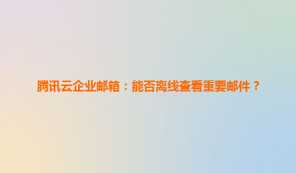 2025-06-01騰訊云企業郵箱:全方位解讀離線查看重要郵件的解決方案 一、核心需求解析:為什么離線查看郵件如此重要? 在移動辦公場景中,網絡環境不穩定成為常態:航班途中、高鐵穿越隧道、偏遠地...