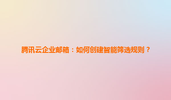 騰訊云企業郵箱:智能篩選規則創建指南與生態優勢解析 在數字化辦公時代,企業郵箱已成為商務溝通的核心樞紐。騰訊云企業郵箱憑借其強大的智能化管理功能,特別是智能篩選規則,可幫助企業高效歸類郵件、過...