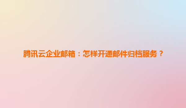 2025-05-31#騰訊云企業郵箱郵件歸檔服務開通指南 為什么企業需要郵件歸檔服務? 在數字化時代,電子郵件已成為企業最重要的溝通工具之一。郵件歸檔不僅是合規性要求,更是企業數據資產管...
