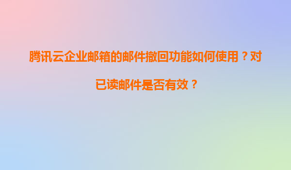 2025-11-06騰訊云企業(yè)郵箱郵件撤回功能詳解 騰訊云企業(yè)郵箱作為國內(nèi)領(lǐng)先的企業(yè)級郵箱服務(wù),憑借穩(wěn)定、安全、高效的特點,深受企業(yè)用戶青睞。其中,郵件撤回功能是企業(yè)辦公場景中非常實用的功能之一,尤其適用于誤發(fā)郵件的情...