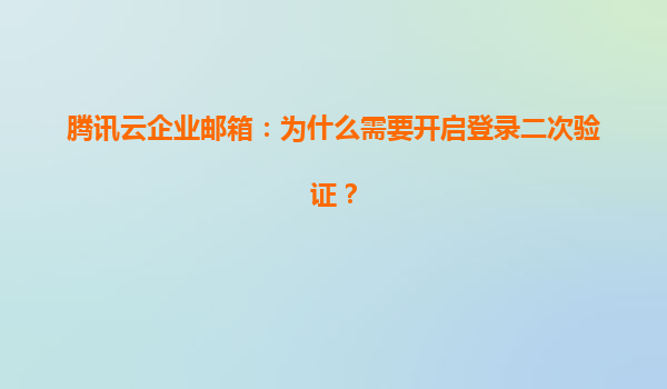 騰訊云企業郵箱:開啟登錄二次驗證的必要性 在數字化時代,企業信息安全面臨前所未有的挑戰。騰訊云企業郵箱作為企業通信的核心工具之一,其安全性直接關系到企業數據與業務的穩定。開啟登錄二次驗證(2FA...