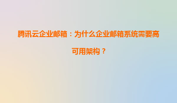 2025-05-26騰訊云企業郵箱:為什么企業郵箱系統需要高可用架構? 在數字化時代,企業郵箱不僅是溝通工具,更是業務運轉的核心樞紐。面對日益復雜的網絡環境和用戶對穩定性的高要求,高可用架構已成為企業郵箱...
