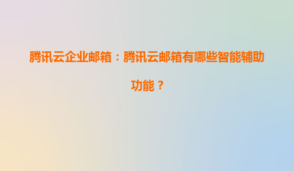 2025-05-26騰訊云企業郵箱:智能化辦公新體驗 隨著企業數字化轉型的深入,高效安全的郵件系統成為企業通信的核心需求。騰訊云企業郵箱憑借其豐富的智能輔助功能與生態優勢,結合騰訊云及代理商的協同服務能力,為企業...