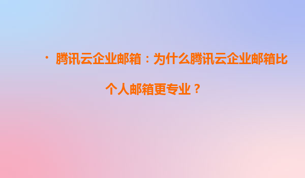2025-05-25騰訊云企業郵箱:助力企業高效溝通與數字化轉型 數字化時代的企業通信剛需 在全球化競爭與數字化轉型的背景下,企業郵箱不僅是基礎通信工具,更是品牌形象與信息安全的重要載體。騰訊云企業郵箱依...
