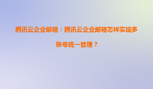 2025-05-25騰訊云企業郵箱:如何實現多賬號統一管理? 在數字化轉型的浪潮中,企業郵箱不僅是溝通工具,更是團隊協作與數據管理的重要載體。騰訊云企業郵箱憑借其強大的功能與穩定的服務,成為眾多...