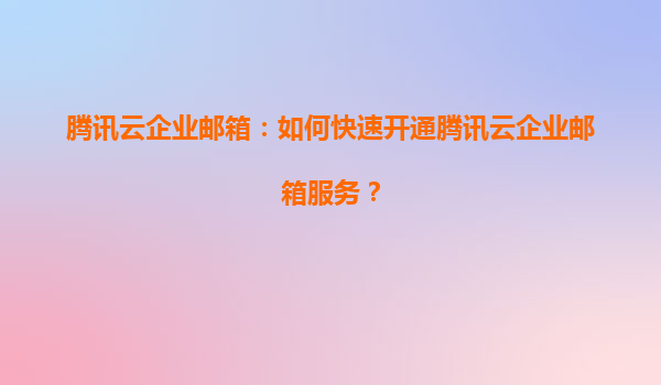2025-05-25騰訊云企業郵箱:如何快速開通騰訊云企業郵箱服務? 一、騰訊云企業郵箱的核心優勢 騰訊云企業郵箱是基于騰訊多年郵件服務經驗打造的云端解決方案,融合了騰訊云強大的技術實力與生態資源,為企業...