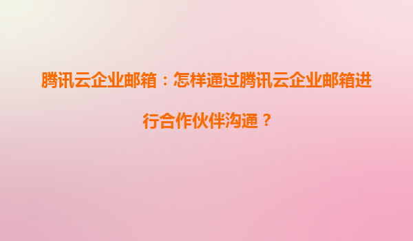 2025-05-24騰訊云企業郵箱:高效安全的合作伙伴溝通解決方案 專業級安全防護體系 在合作伙伴溝通過程中,騰訊云企業郵箱采用銀行級SSL加密傳輸技術,確保郵件內容全程加密傳輸。其自主研發的反垃圾郵件引擎日均攔截10...