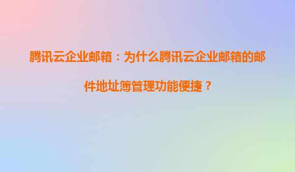 2025-05-20騰訊云企業郵箱:郵件地址簿管理功能為何成為企業效率利器? 在數字化辦公場景中,企業郵箱的地址簿管理能力直接影響團隊協作效率。騰訊云企業郵箱通過技術創新與生態協作,打造出行業領先的智能地...