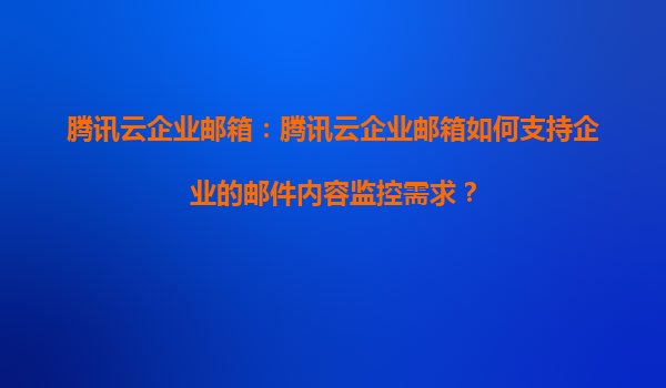 2025-05-20騰訊云企業郵箱如何賦能企業郵件內容監控 一、企業郵件監控的核心需求 隨著數字化辦公普及,企業對郵件內容監管面臨三大挑戰: 敏感信息泄露風險防控 ...