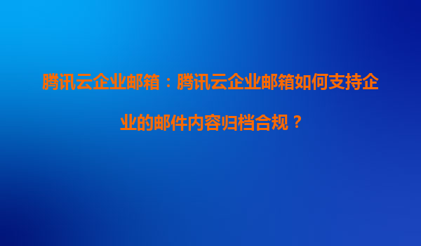 2025-05-20郵件內容歸檔合規的重要性 在數字化時代,企業郵件不僅是日常溝通的重要工具,更是法律合規和風險管理的關鍵環節。金融、醫療、法律等行業對郵件內容的留存、審計和追溯有嚴格監管要求。騰訊云企業郵箱通過...
