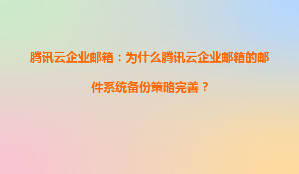 2025-05-20騰訊云企業郵箱的郵件系統備份策略優勢解析 一、多層次數據安全保障機制 騰訊云企業郵箱采用分布式存儲架構與多重冗余備份技術,確保郵件數據在物理層面實現多地容災。通過每日增量備份與全...