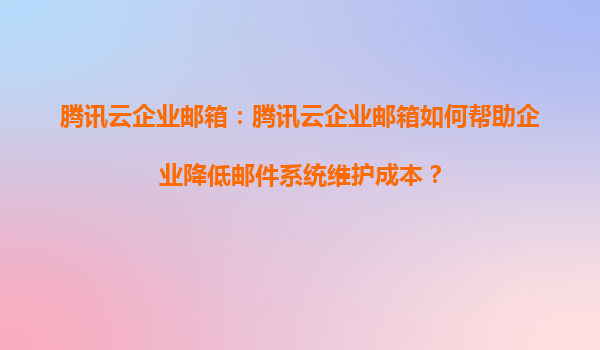 2025-05-20騰訊云企業郵箱:如何助力企業高效降低郵件系統維護成本? 一、免維護的云端架構,釋放IT團隊壓力 騰訊云企業郵箱基于分布式云計算架構設計,企業無需自建物理服務器或租賃機房空間,徹底擺脫硬件...
