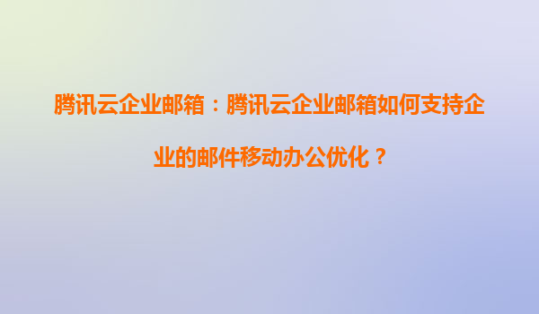 2025-05-20騰訊云企業郵箱:賦能企業郵件移動辦公的智能化解決方案 一、移動辦公場景下企業郵件的核心挑戰 在數字化轉型加速的今天,超過78%的企業員工需要通過移動設備處理工作郵件。傳統郵箱系統面臨多終...