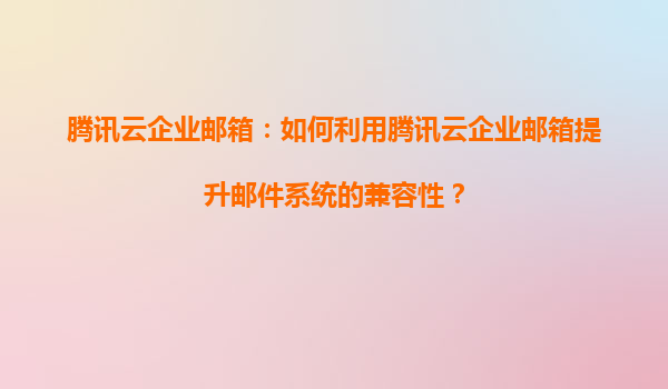 2025-05-20騰訊云企業郵箱:如何利用騰訊云企業郵箱提升郵件系統的兼容性? 一、郵件系統兼容性的重要性 隨著企業數字化轉型的加速,郵件系統已成為日常溝通和業務協作的核心工具。然而,不同設備、操作系統、郵...