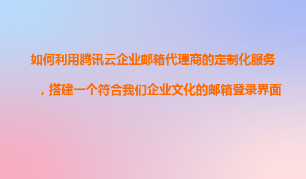 2025-11-05如何利用騰訊云企業(yè)郵箱代理商的定制化服務(wù),搭建符合企業(yè)文化的郵箱登錄界面 一、騰訊云企業(yè)郵箱的定制化服務(wù)優(yōu)勢(shì)解析 騰訊云企業(yè)郵箱作為國(guó)內(nèi)領(lǐng)先的企業(yè)級(jí)郵箱解決方案,其代理商提供的定制化服務(wù)具備以...