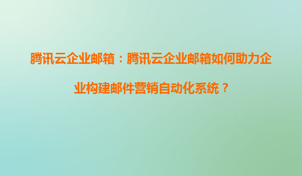 2025-05-18騰訊云企業郵箱如何助力企業構建郵件營銷自動化系統? 一、騰訊云企業郵箱的核心優勢 騰訊云企業郵箱基于云計算技術,提供高可用性、安全穩定的郵件服務,同時具備以下核心優勢: 智能化...