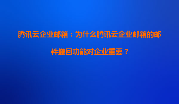 2025-05-18騰訊云企業郵箱:為什么郵件撤回功能對企業至關重要? 一、郵件撤回功能的核心價值 在數字化辦公場景中,電子郵件作為企業內外溝通的核心工具,其內容往往涉及商業機密、合同條款或敏感決策。郵件撤回...