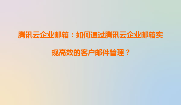 2025-05-18騰訊云企業郵箱:如何通過騰訊云企業郵箱實現高效的客戶郵件管理? 一、高效客戶郵件管理的重要性 在數字化商業環境中,客戶郵件是企業與客戶溝通的核心渠道之一。高效的郵件管理不僅能提升客戶滿意度...