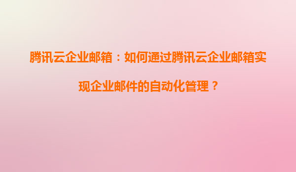 2025-05-18騰訊云企業郵箱:自動化管理助力企業高效運營 一、智能分類與標簽管理 騰訊云企業郵箱通過AI算法實現郵件智能分類,自動識別客戶咨詢、內部通知、營銷推廣等郵件類型,并支持自定義標簽規則。管理員可設置...