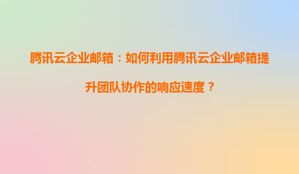 2025-05-18騰訊云企業郵箱:如何利用騰訊云企業郵箱提升團隊協作的響應速度? 在當今快節奏的商業環境中,高效的團隊協作是企業成功的關鍵。騰訊云企業郵箱憑借其強大的功能和云端服務能力,成為許多企業提升...
