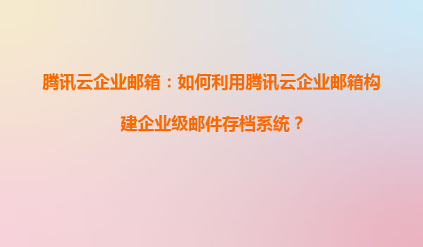 2025-05-18騰訊云企業郵箱:如何構建企業級郵件存檔系統? 一、企業郵件存檔的重要性與挑戰 在數字化辦公時代,企業郵件不僅是溝通工具,更是法律合規、知識管理的重要載體。金融、醫療、政府等行業需遵循《網絡安全...