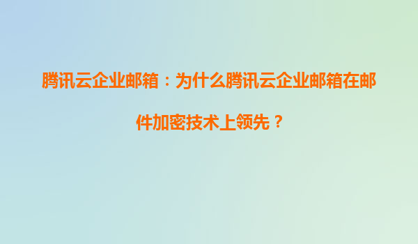 騰訊云企業郵箱:為什么在郵件加密技術上領先? 一、企業郵箱安全的核心:加密技術的重要性 在數字化時代,企業郵箱不僅是溝通工具,更是核心數據資產的重要載體。郵件內容可能涉及商業機密、客戶隱私...