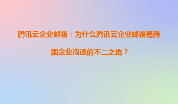 2025-05-18如何利用騰訊云企業郵箱提升品牌專業形象? 一、企業郵箱:品牌形象的第一張名片 在數字化商業競爭中,企業郵箱不僅是溝通工具,更是品牌專業性的直觀體現。使用騰訊云企業郵箱(如"name@yourcomp...