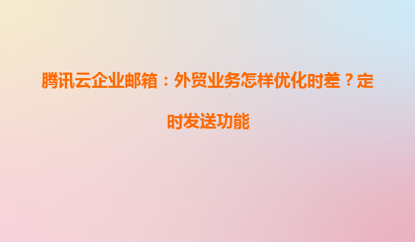 2025-05-17騰訊云企業郵箱:外貿業務如何優化時差難題?定時發送功能解析 一、外貿業務的時差痛點與核心需求 在全球化的外貿業務中,時區差異導致客戶溝通效率低下: 重要郵件可能因非工作時間被客...