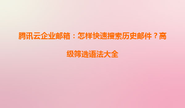 2025-05-16騰訊云企業郵箱:高效搜索歷史郵件的實用指南 一、為何需要高效搜索郵件功能? 在日常工作中,企業用戶常需快速定位重要郵件。騰訊云企業郵箱憑借強大的郵件存儲能力和智能檢索技術,幫助用戶通過...