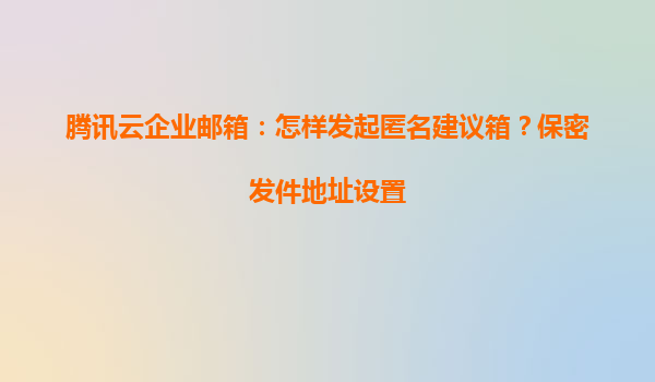 2025-05-16騰訊云企業郵箱:如何發起匿名建議箱并設置保密發件地址 一、匿名建議箱的意義與應用場景 在企業內部管理中,匿名建議箱是提升員工參與度、收集真實反饋的重要工具。通過騰訊云企業郵箱的保密發件功能...