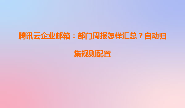 2025-05-16部門周報自動歸集的重要性 在現代企業管理中,部門周報是團隊協作與信息同步的重要工具。然而,傳統的手動收集方式效率低下,容易出現遺漏或格式混亂。騰訊云企業郵箱通過智能化功能,幫助用戶實現周報的自動歸...