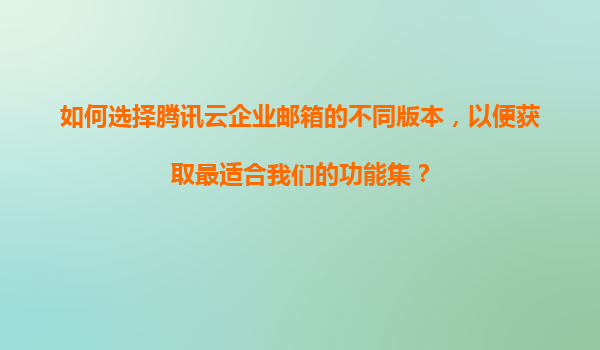 2025-11-05如何選擇騰訊云企業(yè)郵箱的不同版本,以便獲取最適合我們的功能集? 一、騰訊云企業(yè)郵箱版本概覽 騰訊云企業(yè)郵箱提供多個版本以滿足不同規(guī)模企業(yè)的需求,主要包括:基礎版、標準版、旗艦版和定制版。每個版本在...